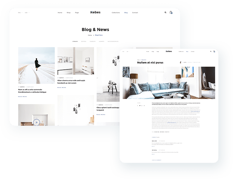 Hebes provide 3 main blog layouts and you can also customize yours with the Blog shortcodes.